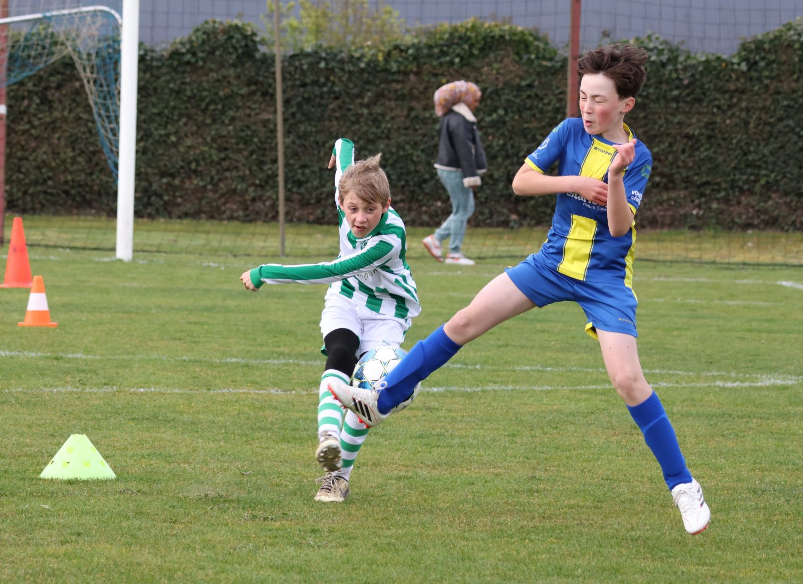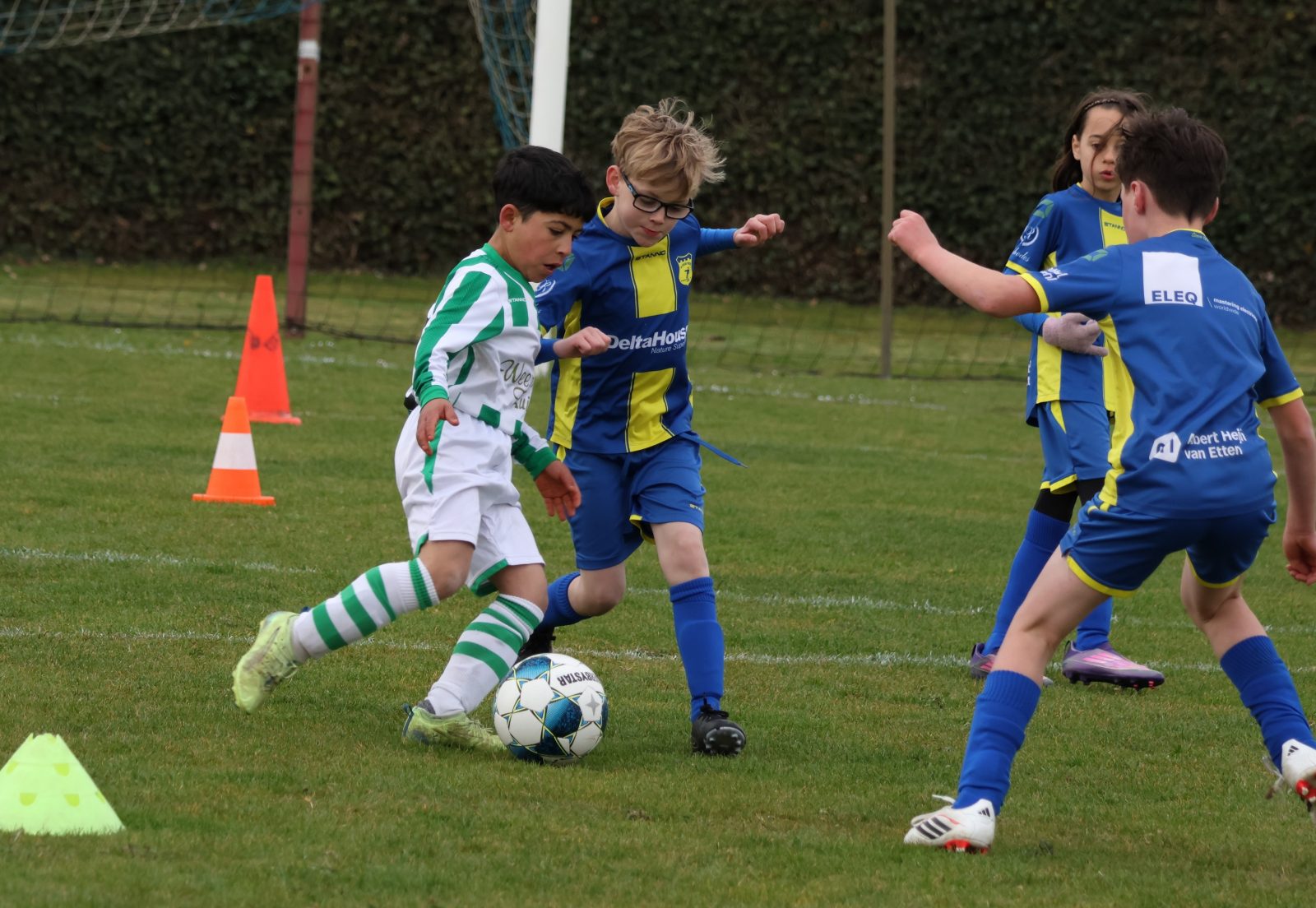 Wie afgelopen zaterdag langs de lijn stond, net als fotograaf Melita Schelhaas, kreeg zeker waar voor z’n geld. Olde Veste JO10-3 en Blokzijl JO10-1 maakten er een doelpuntrijke ochtend van. Met 4-7 op het scorebord was het voor de keepers even doorbijten, maar voor het publiek puur genieten. Vol gas, tot de laatste minuut! Gelukkig hebben we de foto’s nog…