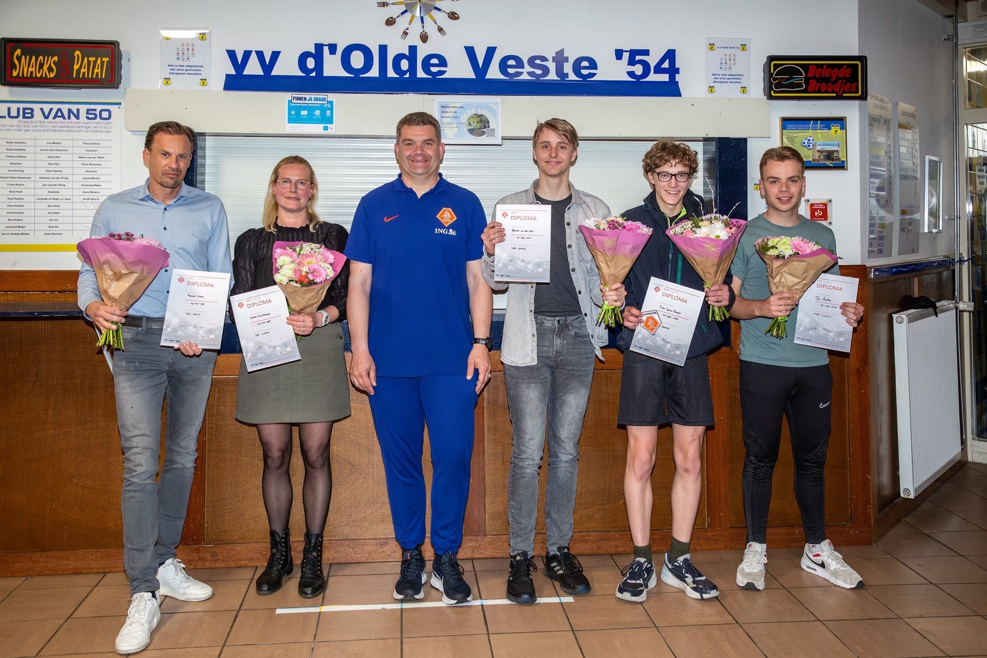 De geslaagden namens Olde veste zijn: Yvonne Minnebreuker, Ronald Vinke, Swen Doosje, Patrick vd Veen, Tijn Betten en Ahmad Katimati (foto hieronder).