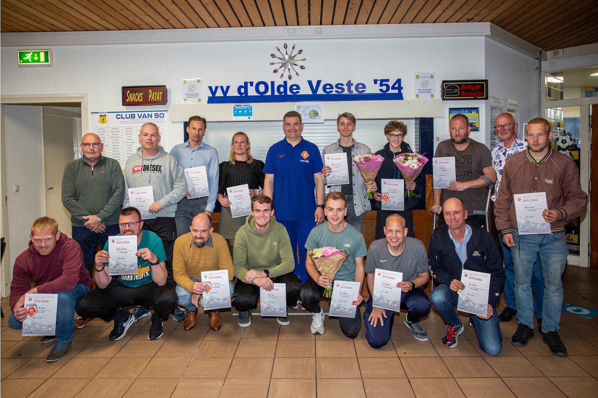 Onder leiding van de KNVB docent Hans van Bruggen hebben 18 deelnemers van de volgende clubs met succes op 10 mei deze cursus afgerond: