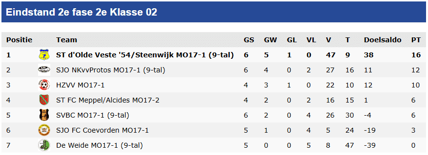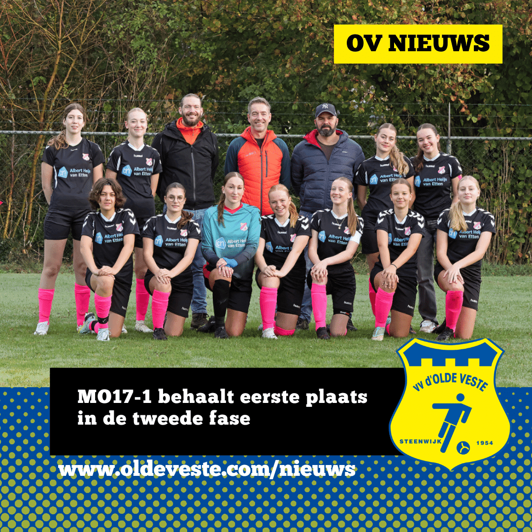 Op zaterdag 21 december heeft ST d’Olde Veste ’54/vv Steenwijk MO17-1 de eerste plek veroverd na winst op SVBC M017-1. Een prima 6-3 overwinning was voor het combinatieteam voldoende voor het kampioenschap.