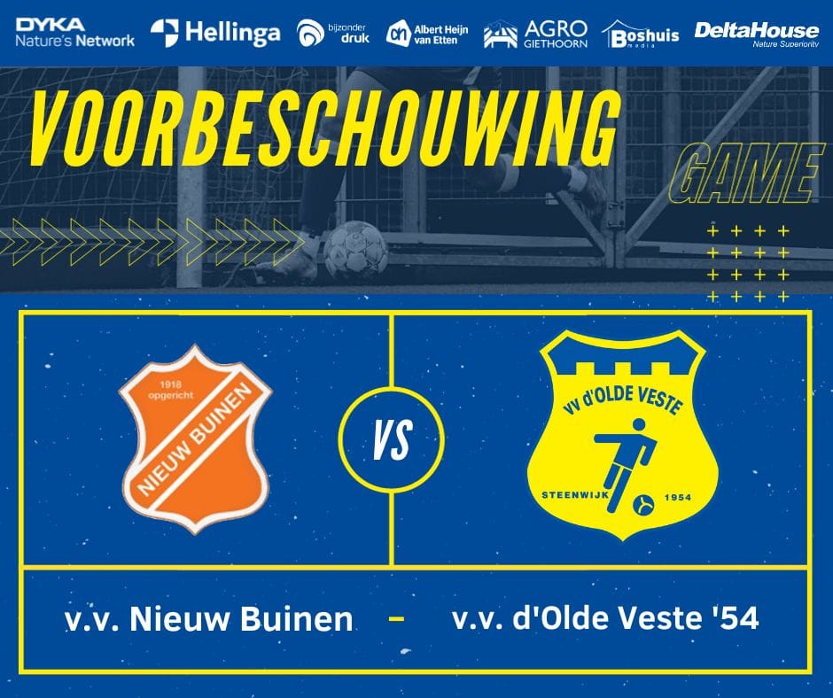 Het is tijd voor de eerste ronde in de Districtsbeker. Na een succesvolle poulefase mogen we deze keer aantreden tegen Nieuw Buinen. We spelen uit in Drenthe tegen de vv die uitkomt in de 4e Klasse D na enkele degradaties in de afgelopen jaren. In het verleden kwam VV Nieuw Buinen nog uit op Hoofdklasseniveau, maar dat is vergane glorie. De 4e Klasse lijkt na de nog prille start van de competitie echter weer een maatje te klein voor de ploeg in het oranje-wit. De club staat momenteel fier bovenaan met 12 punten uit vier wedstrijden met een doelsaldo van +19: nul tegen en negentien voor. Ook in de poulefase van de Districtsbeker ging VV Nieuw Buinen als nummer 1 door op basis van het beste doelsaldo.