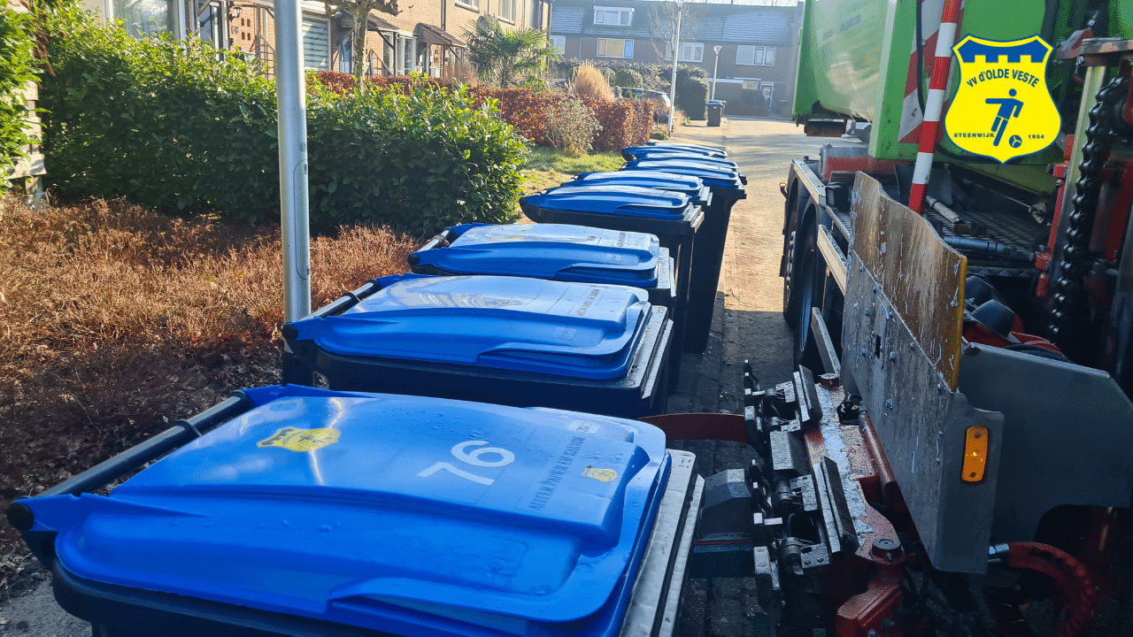 Sinds vorig jaar zijn de grote oud-papier containers bij Olde Veste verdwenen. De gemeente Steenwijkerland heeft gekozen voor een nieuw systeem: bijna elk huishouden heeft nu een eigen blauwe container voor oud papier, die periodiek wordt opgehaald door afvalverwerker ROVA. Dat betekent echter niet dat de club er helemaal buiten staat. Integendeel: Olde Veste ontvangt nog steeds een deel van de opbrengsten van het ingezamelde papier — geld dat rechtstreeks ten goede komt aan de clubkas. Maar daar staat wel een tegenprestatie tegenover: de vereniging moet een aantal keer per jaar vrijwilligers leveren om de ROVA te ondersteunen tijdens de inzameling.