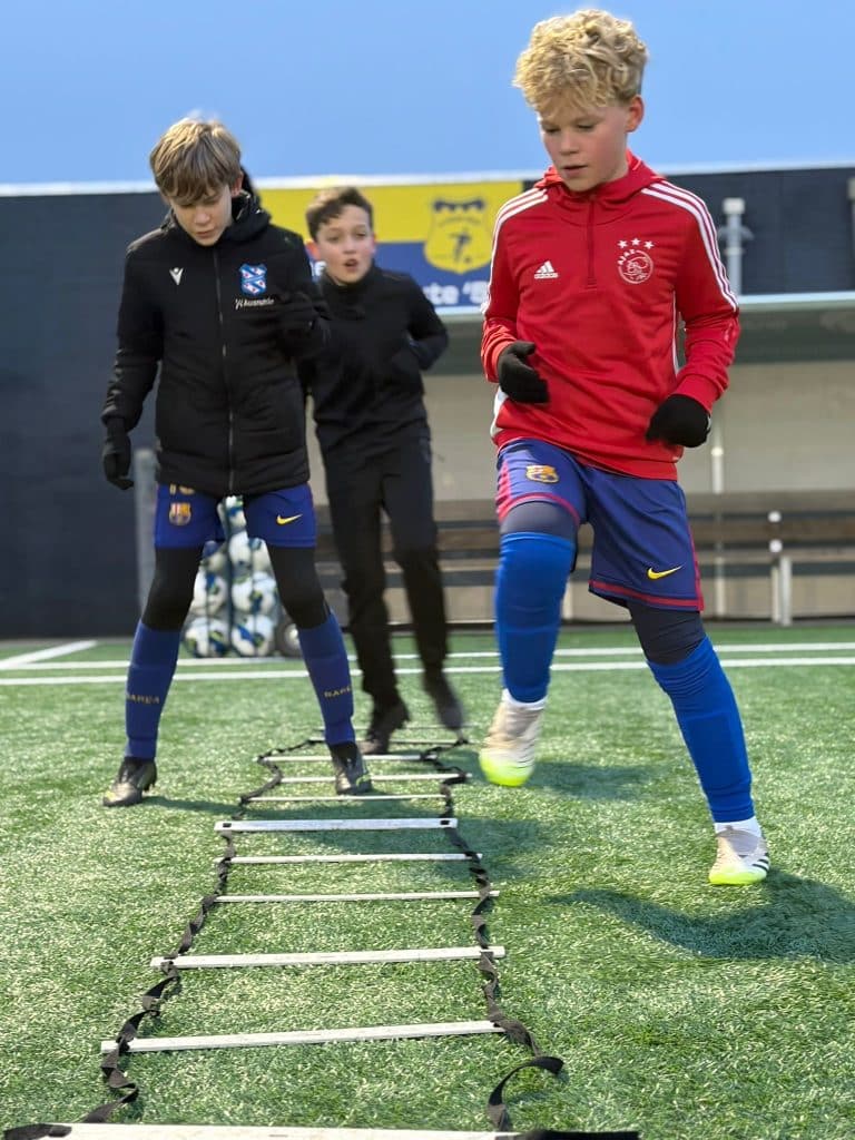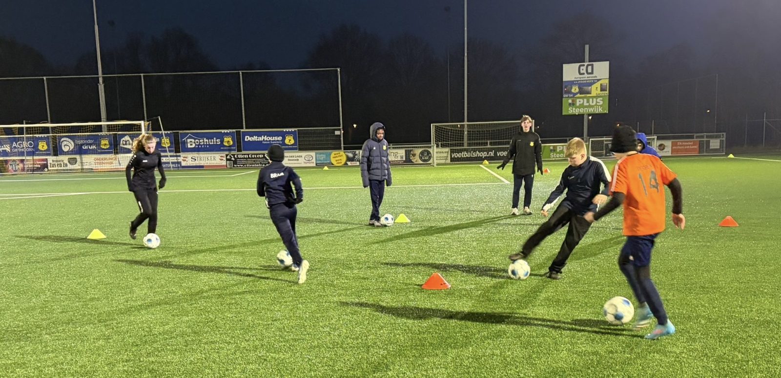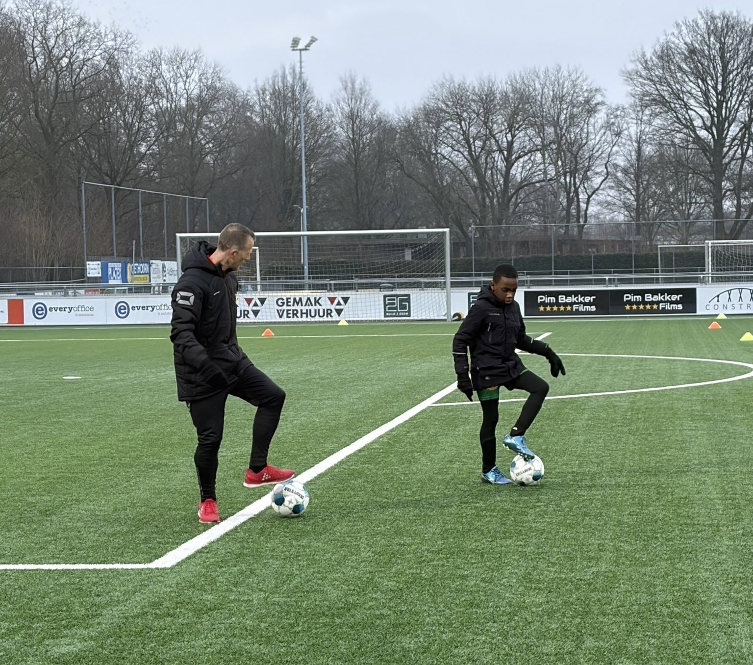 Tijdens deze training werd er in kleine groepen gericht gewerkt aan technische vaardigheden zoals tweebenig trainen, de wreeftrap en de eerste aanname.