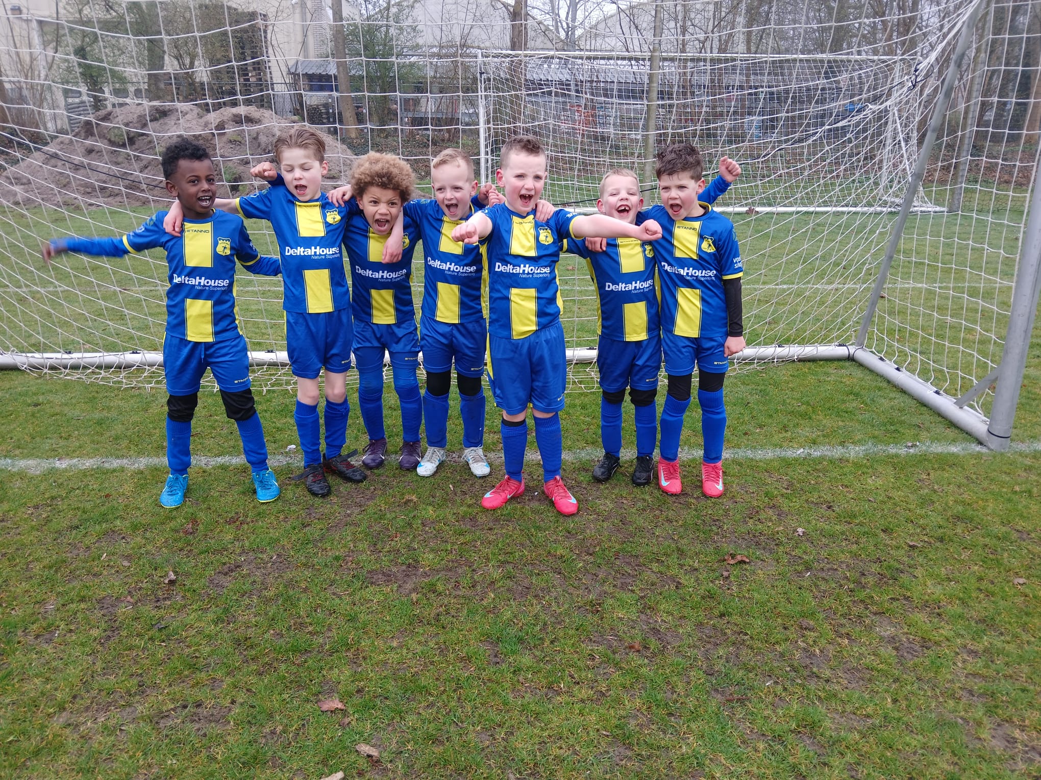 Sinds de 3e fase spelen onze mannen samen. Op een groter veld, véél grotere doelen, met meer spelers, kortom een mooie nieuwe uitdaging. Helaas werden de eerste wedstrijden afgelast. Flink balen, want onze jongens zijn flink gemotiveerd om te knallen! Na wedstrijden tegen MSC, 2x tegen SC Genemuiden, SV Giethoorn, was er na het gelijke spel van vorige week, dan eindelijk onze eerste overwinning! Wat was het vroeg vertrekken, 07:30 uit Steenwijk richting Hasselt, waar