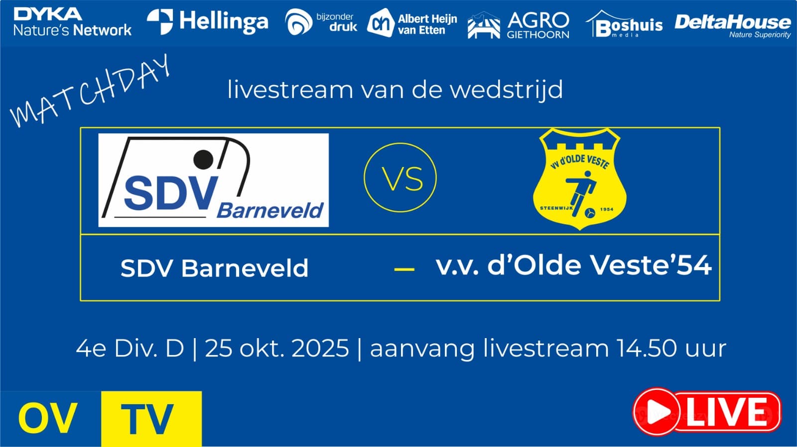 - Voor supporters – Kom onze teams aanmoedigen tijdens spannende wedstrijden en vier samen met ons de successen van Olde Veste! Onze eerste selectie speelt op Vierde Divisie-niveau, wat betekent dat we op ons sportpark regelmatig sterke tegenstanders ontvangen. Benieuwd naar de sfeer en hoogtepunten? Bekijk hieronder een paar samenvattingen van ons YouTube-kanaal OV-TV en beleef de actie mee!