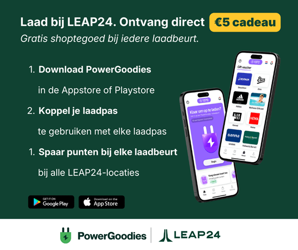Naast scherpe tarieven biedt LEAP24 ook het spaarprogramma PowerGoodies aan. Bij iedere laadsessie sparen gebruikers automatisch punten die ingewisseld kunnen worden voor cadeaubonnen, zoals een dinerbon, boekenbon, Prenatal- of Douglas-bon. Bij de eerste laadsessie ontvangen nieuwe gebruikers direct een cadeaubon ter waarde van €5.