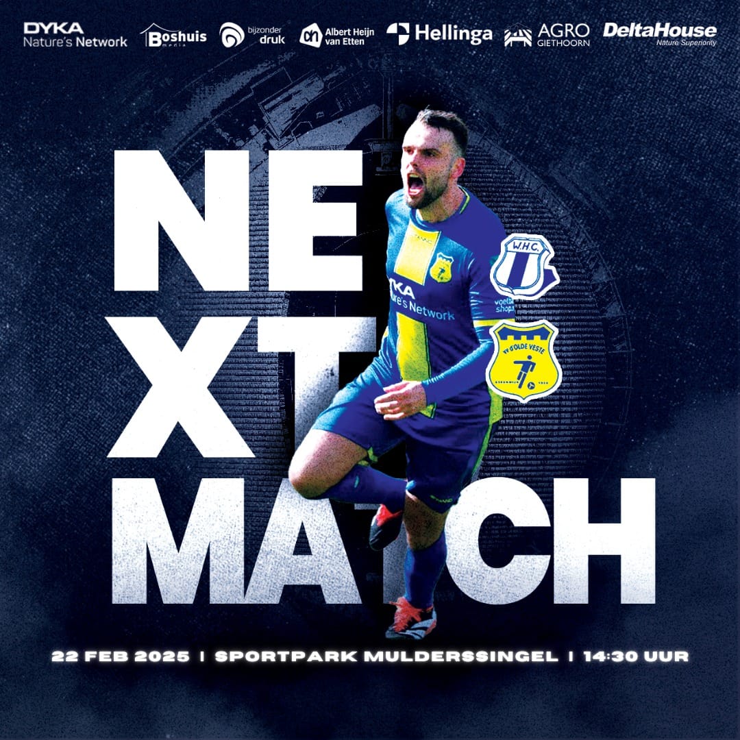 Dankzij de overwinning afgelopen week tegen Heino, stegen we meteen op de ranglijst naar plek 7. Daar staan we één plek boven ONS Sneek en eentje onder HZVV met gelijk puntenaantal. Onze tegenstander van deze speelronde staat er minder gunstig voor. De tegenstander is WHC uit Wezep en dat staat momenteel 14e met 18 punten en een doelsaldo van -16. Tegen WHC hebben we nog wat recht te zetten. Thuis speelden we wonderbaarlijk genoeg 2-2 gelijk na een stortvloed aan kansen. De 2-2 van Nick Kuiper viel echter pas in de blessuretijd dus we kwamen nog een soort van ‘goed weg’ ook. Dat moet nu natuurlijk anders.