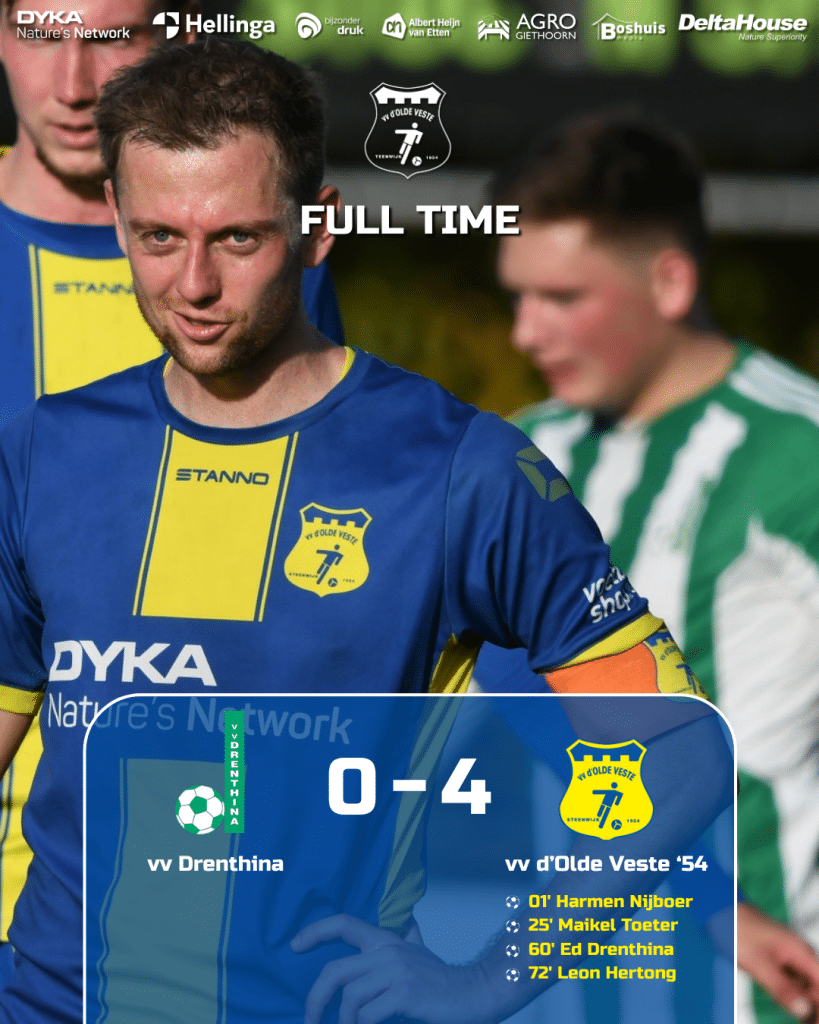 Drenthina, waar in de jaren zeventig van de vorige eeuw oud-Olde Vestenaren Geert Brouwer, Wim van Dijk en Willem Bos gelijktijdig in het eerste voetbalden, komt tegenwoordig uit in de tweede klasse J en bood zo goed mogelijk weerstand, maar had aanvallend weinig in de melk te brokkelen.